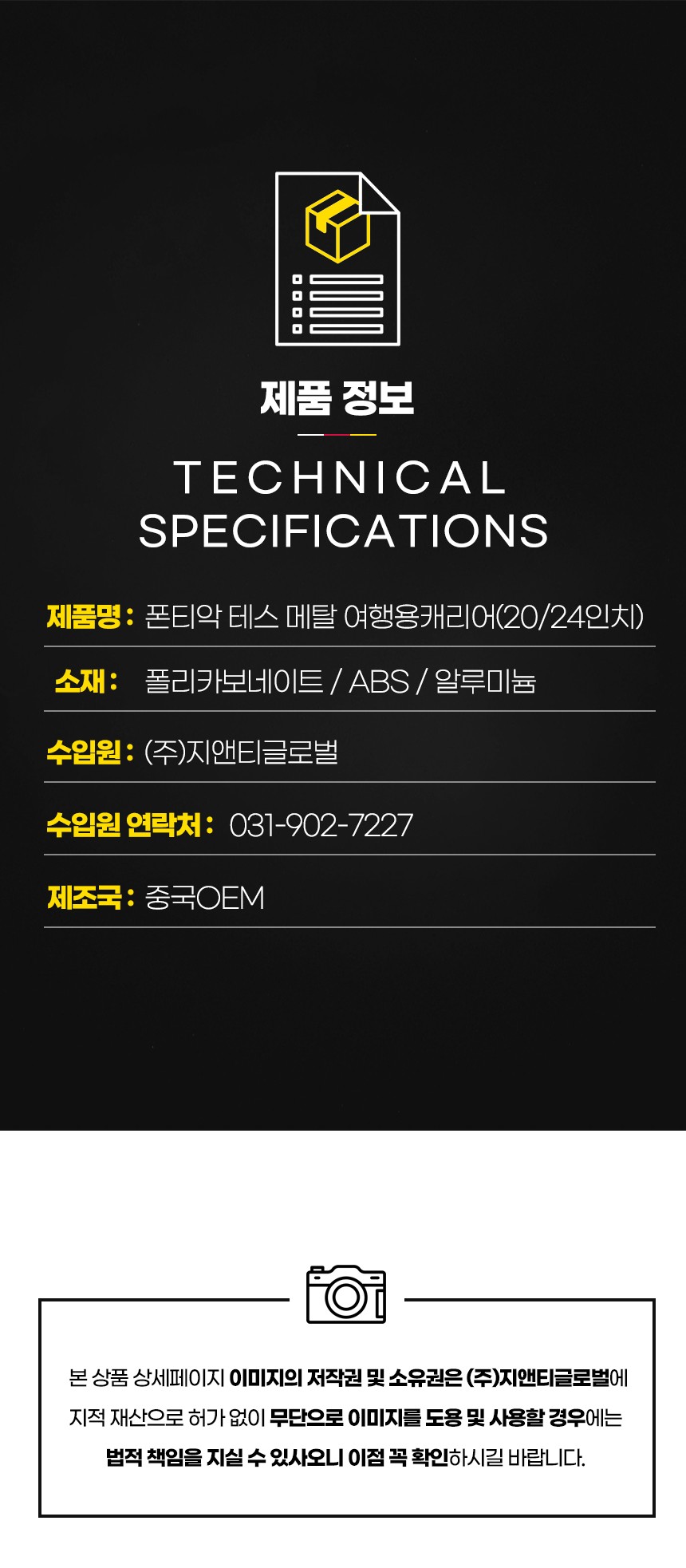 폰티악 테스 메탈PC 여행용캐리어 기내용 (20인치)