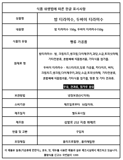 뷔에르 밤 티라미수 두바이 티라미수 150g