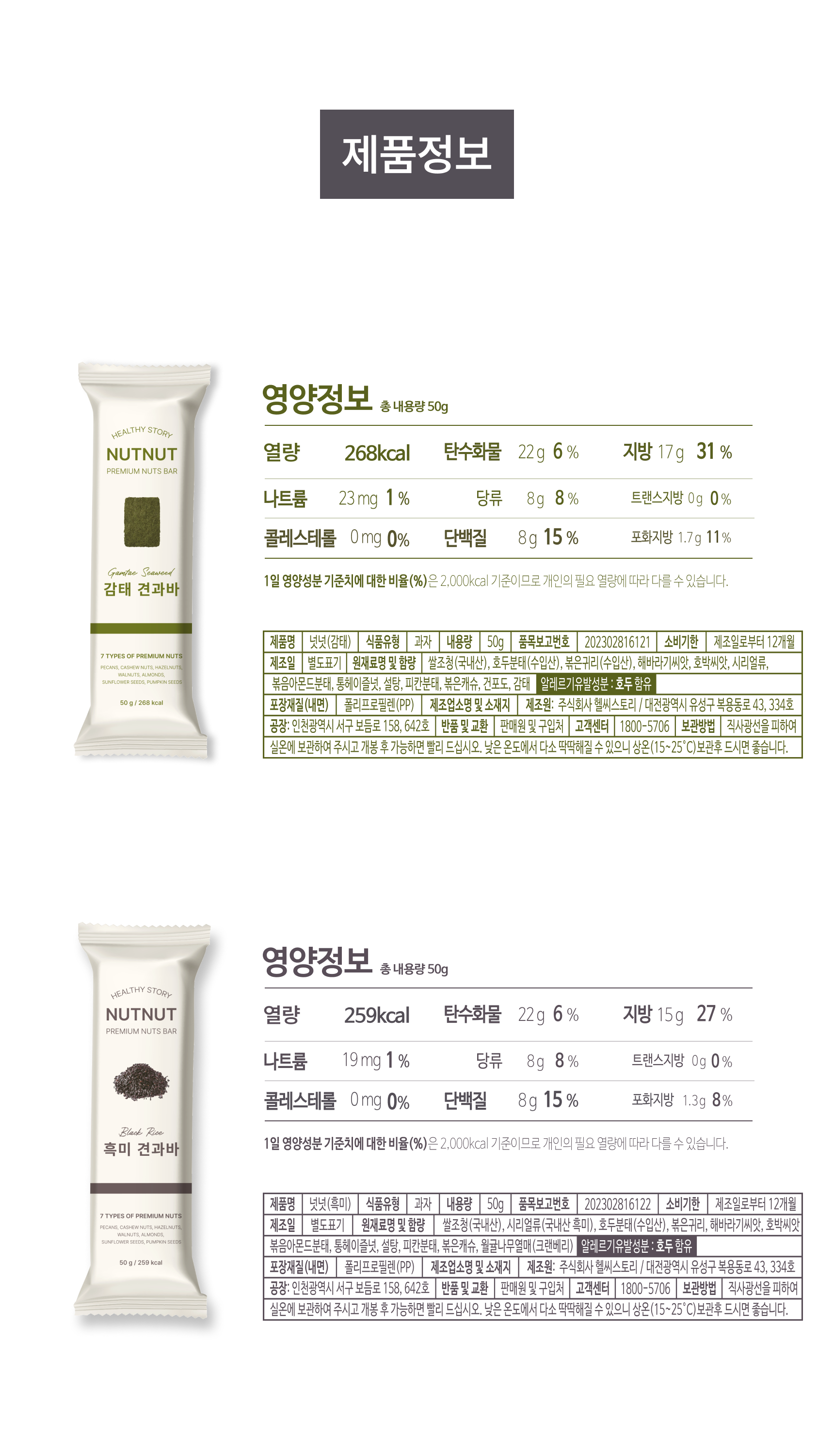 넛넛 감태견과바 흑미견과바 50g 10개