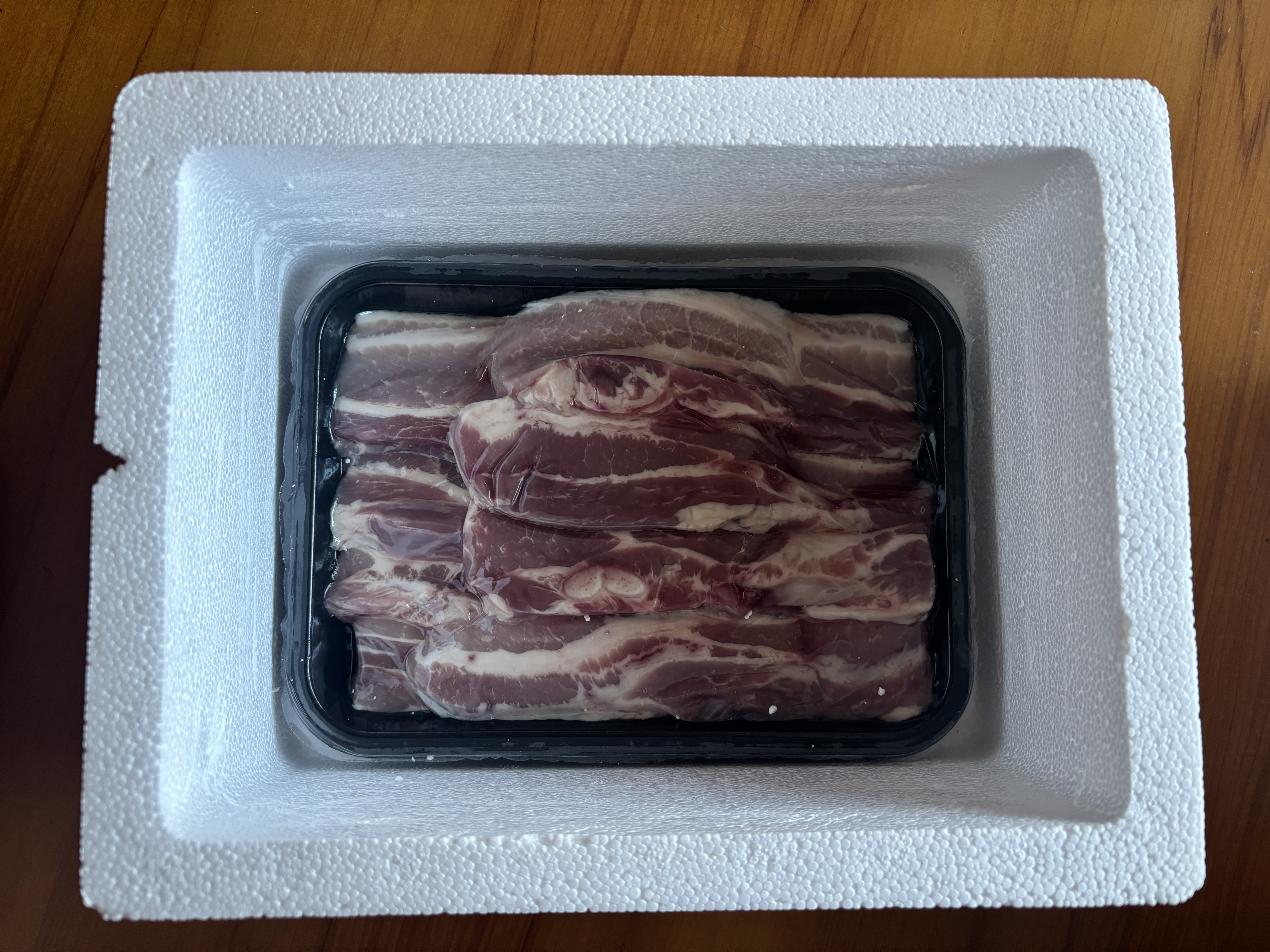 냉장 삼겹살 입니다. 겉포장 띠지없이 출고 됩니다.