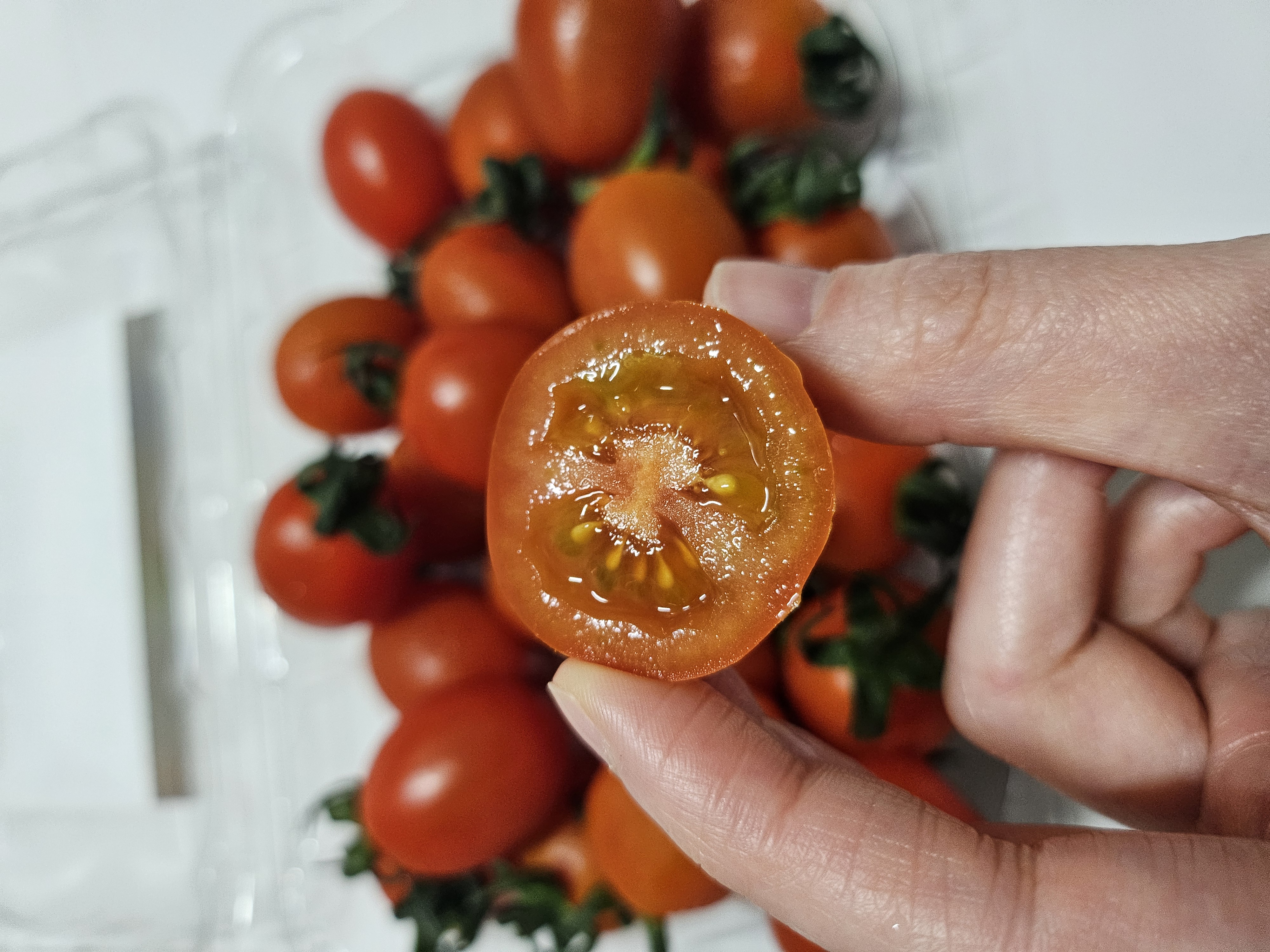 완전한 빨간색을 띄지 않아도 당도가 차있는 상태입니다 오히려 후숙하게 되면