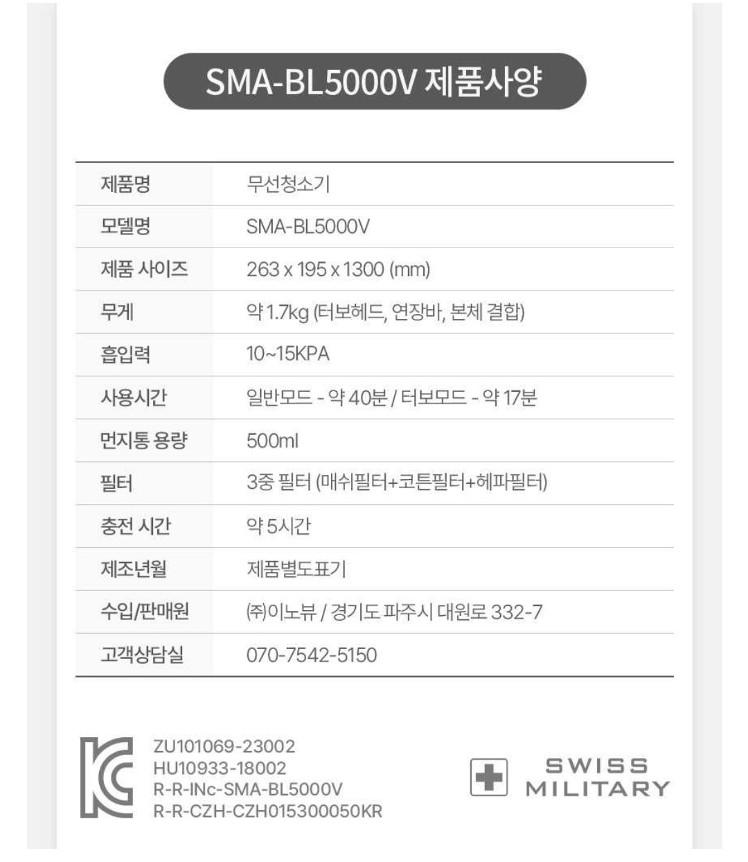 스위스밀리터리 무선청소기