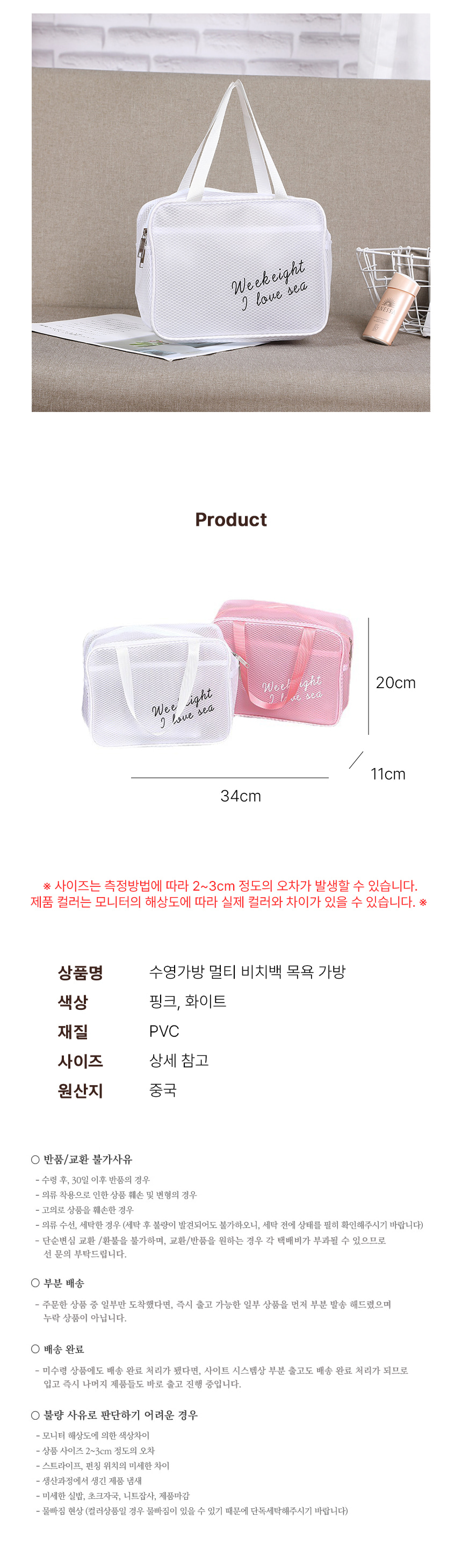 수영가방 멀티 비치백 목욕 가방