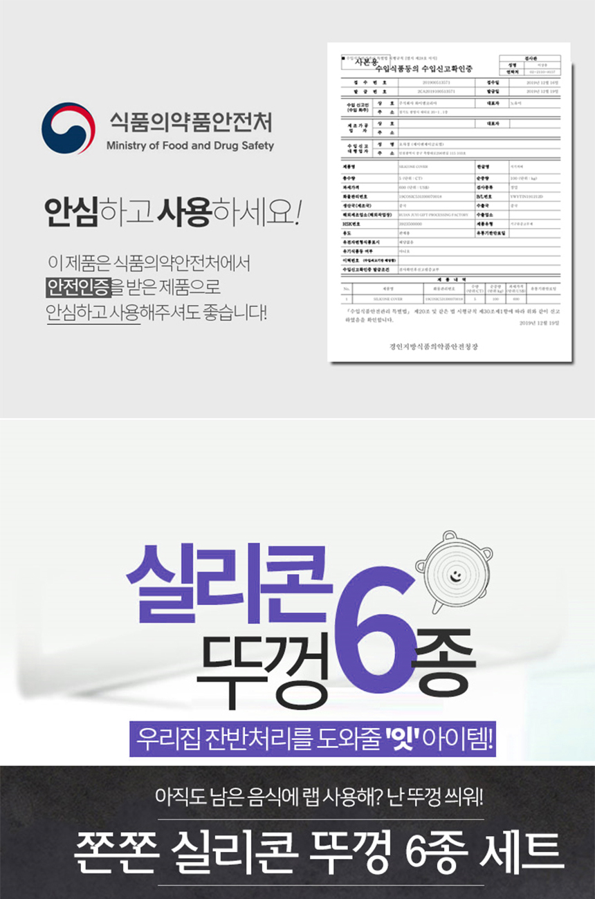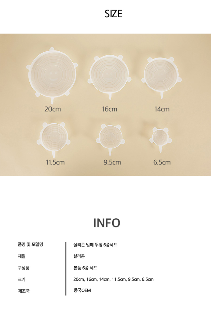 실리콘 밀폐뚜껑 6종세트