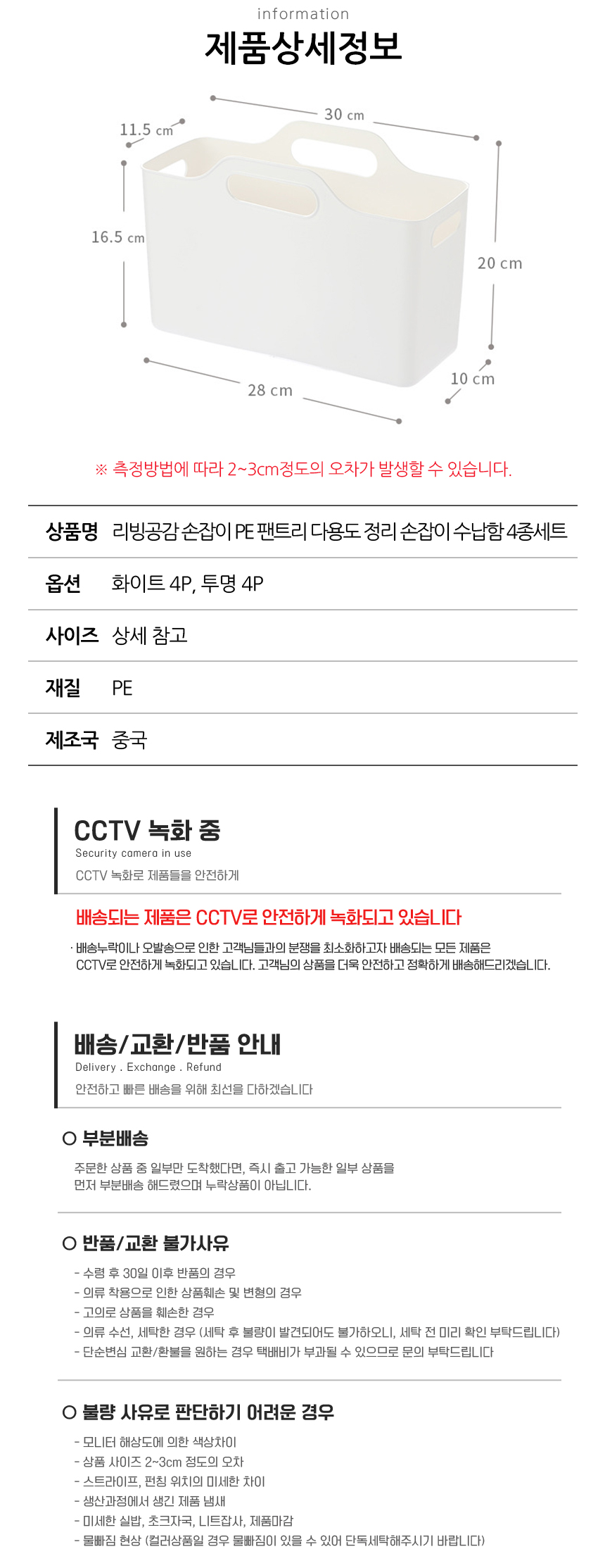 손잡이 팬트리 다용도 정리 손잡이 수납함 4종세트