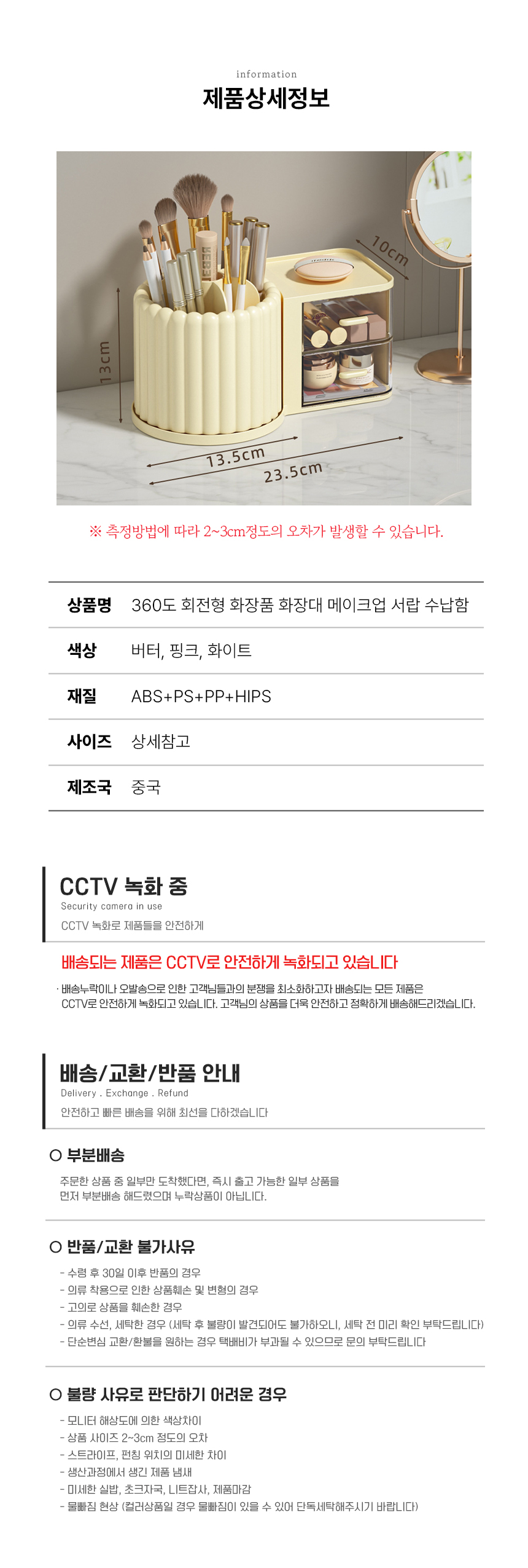 360도 회전형 화장품 화장대 메이크업 서랍 수납함