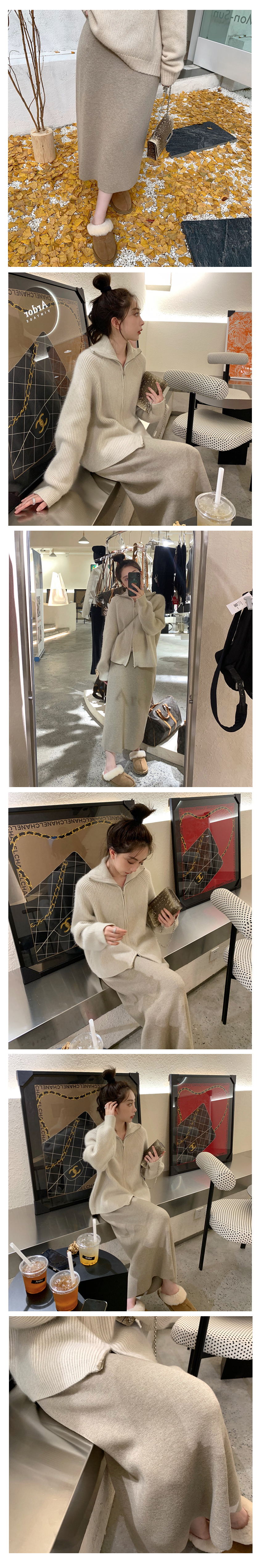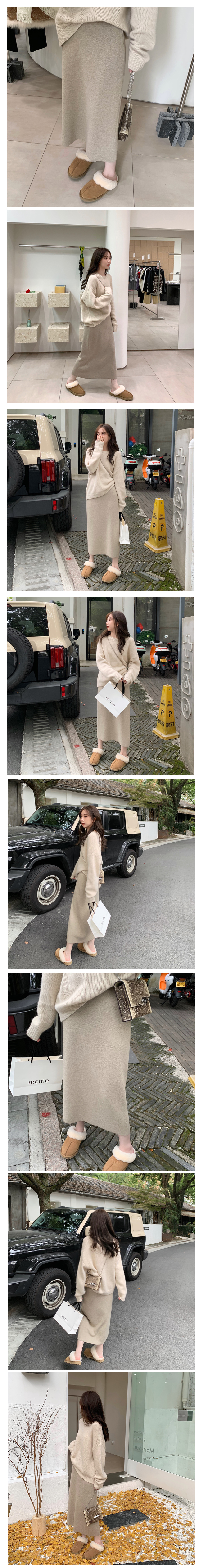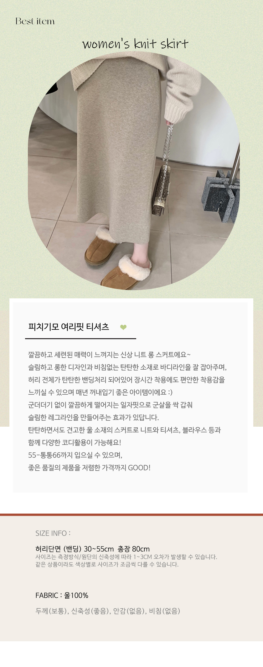 허리밴딩 울소재 도톰 니트 롱 스커트