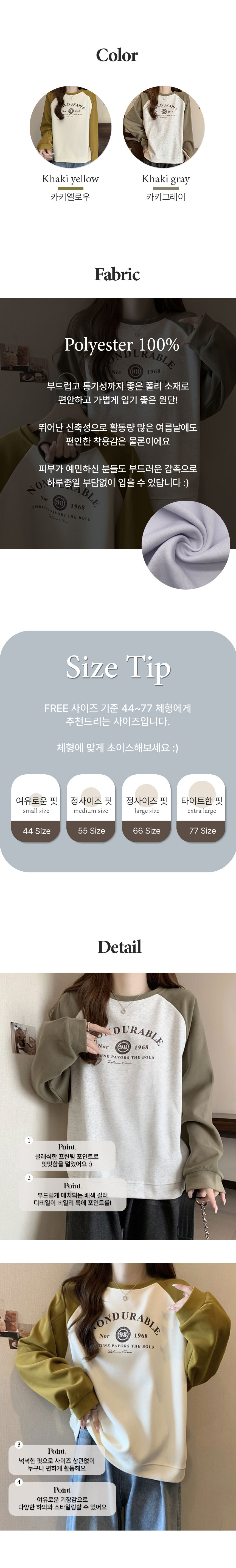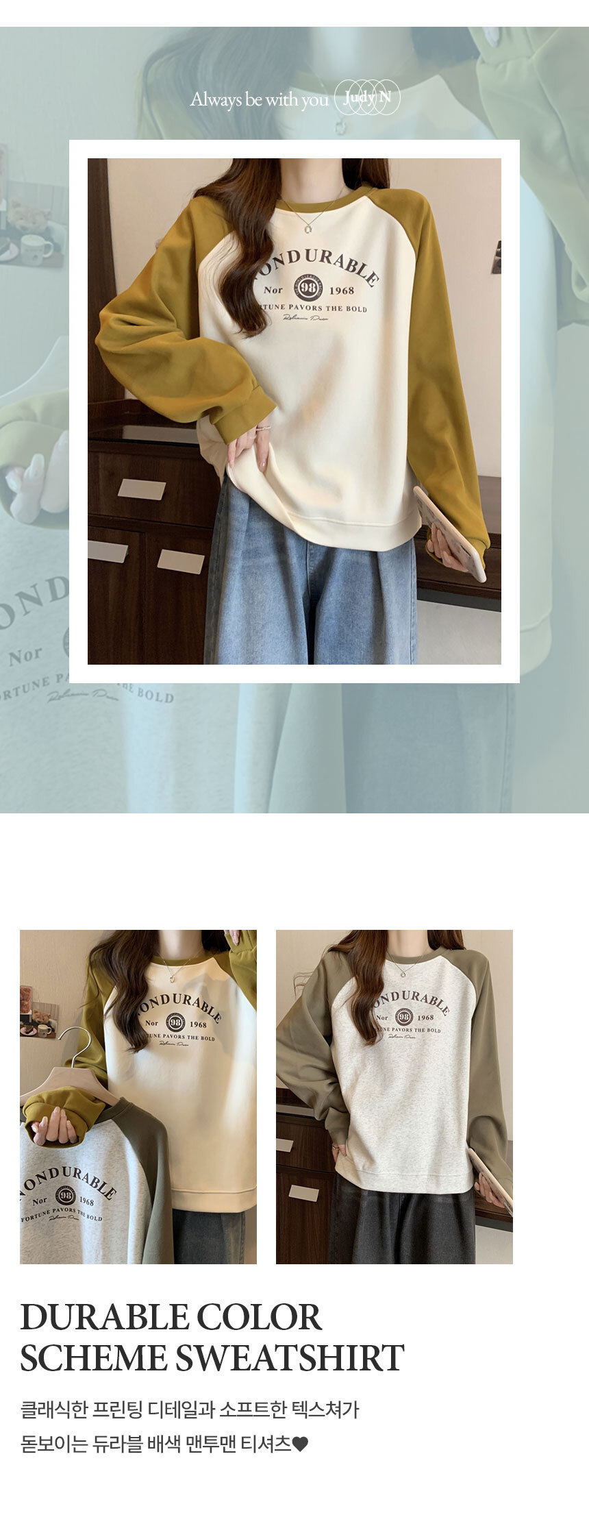 듀라블 배색 맨투맨 티셔츠