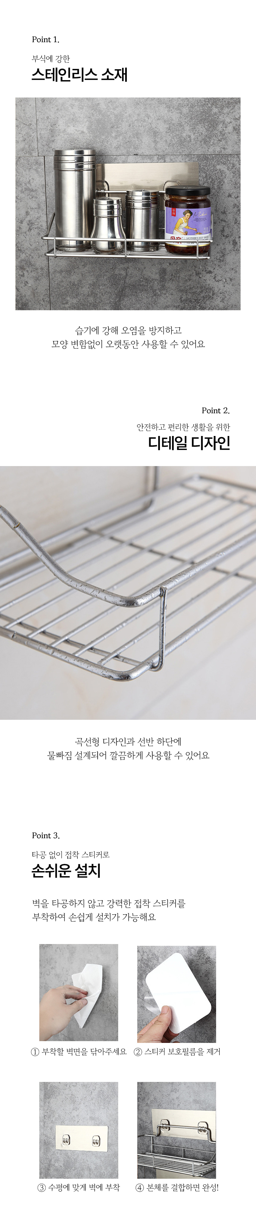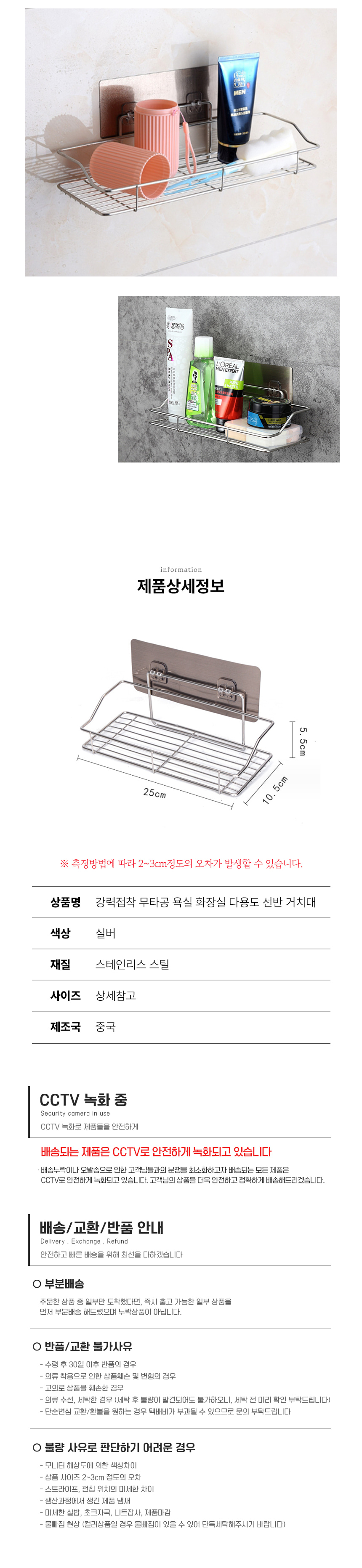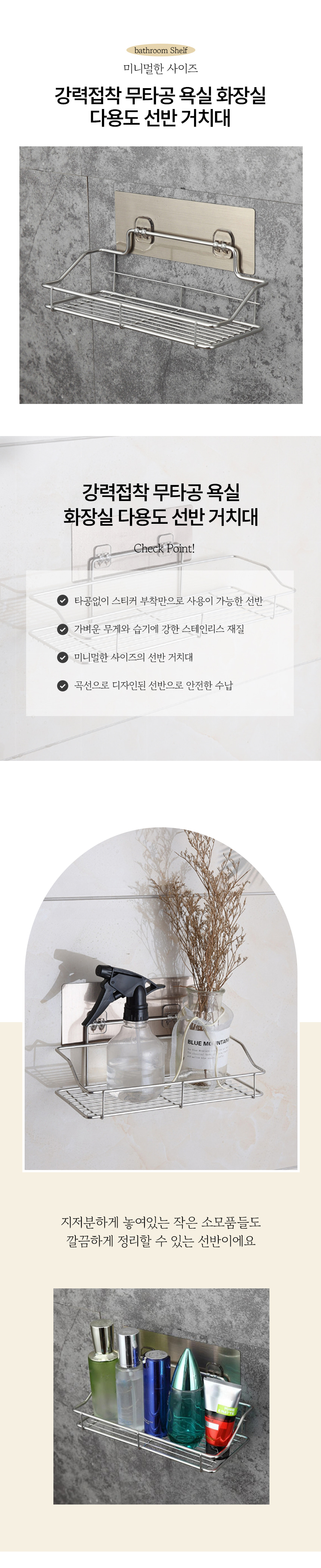 강력접착 무타공 욕실 화장실 다용도 선반 거치대
