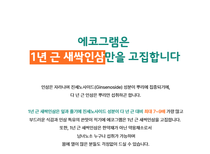 에코그램 새싹인삼 선물세트 1년근 대 90뿌리