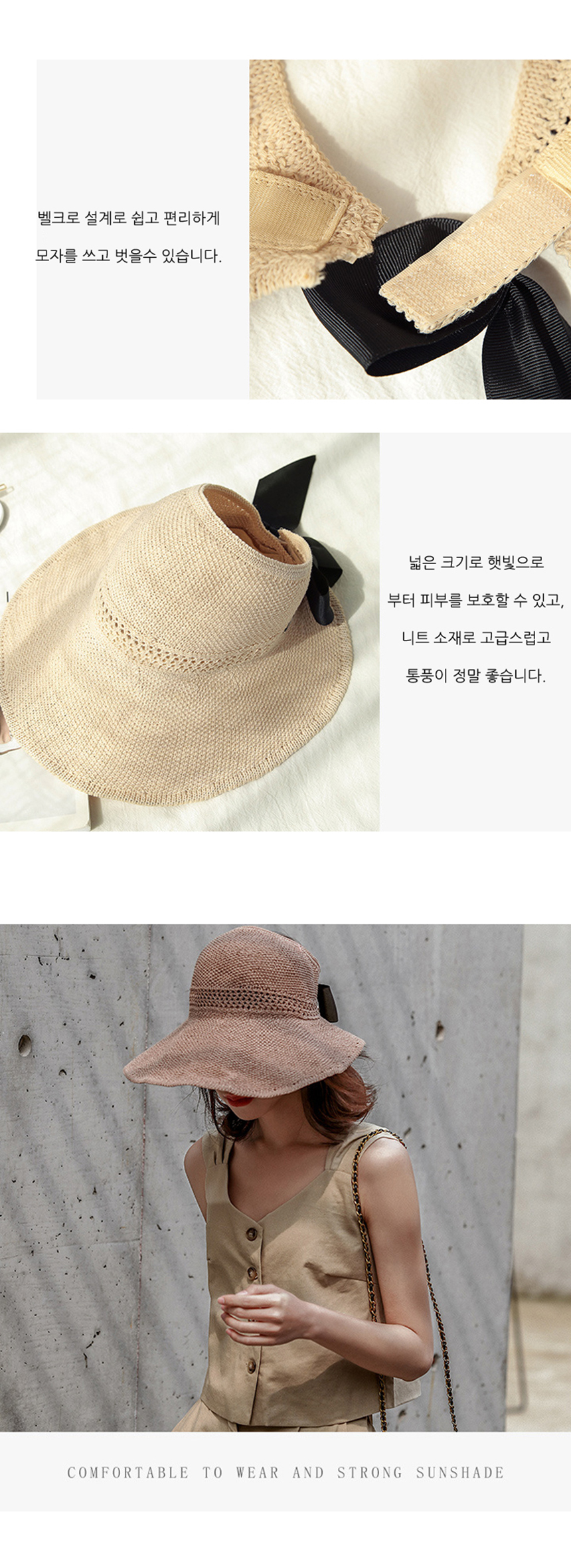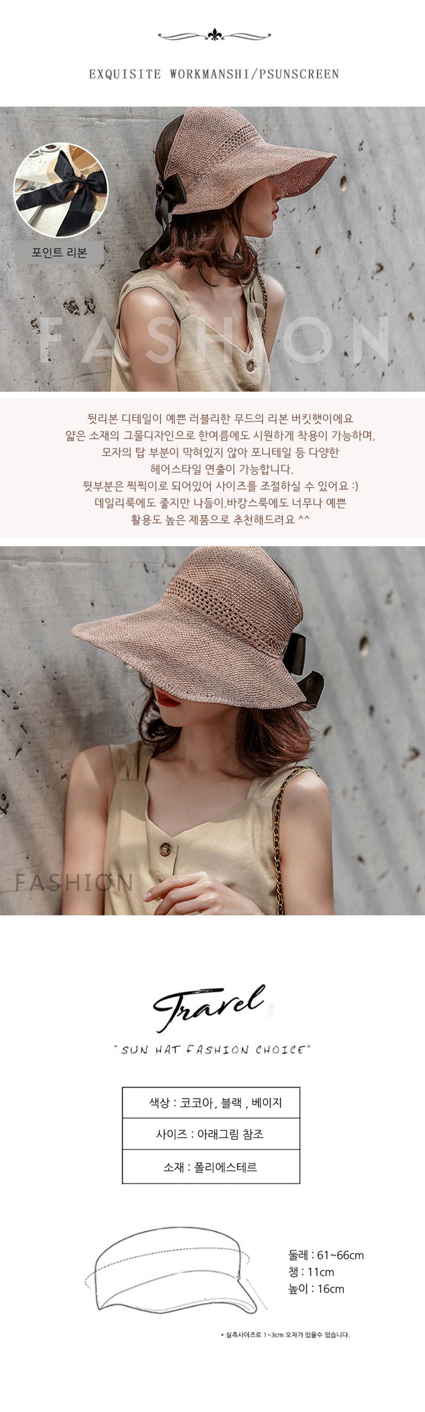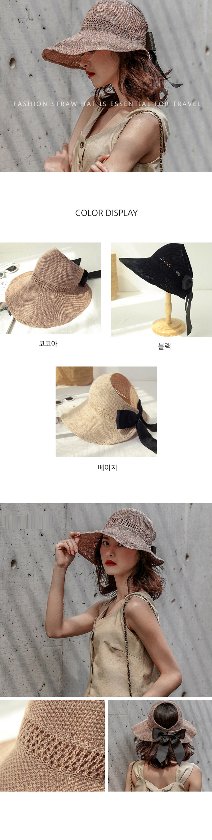 밀짚 리본버킷모자