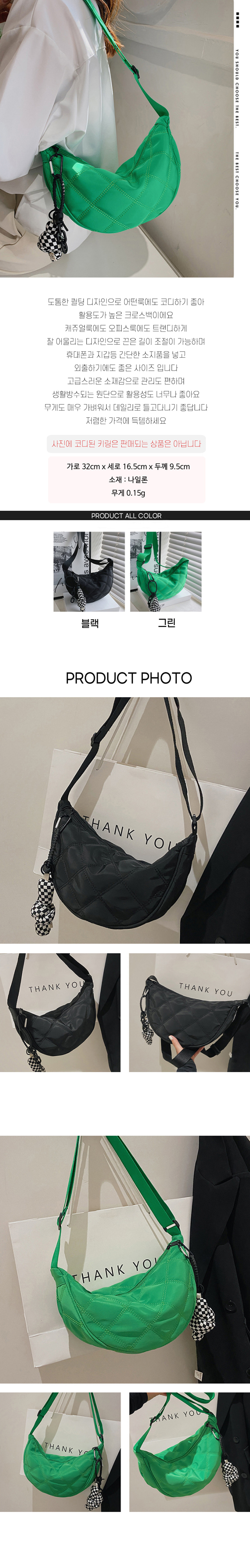 가벼운 퀼팅 반달 크로스백