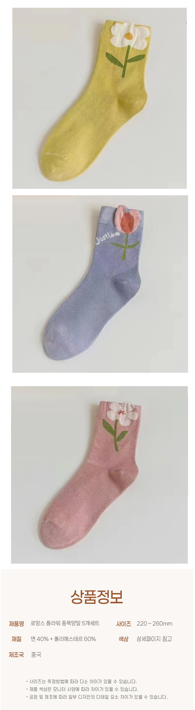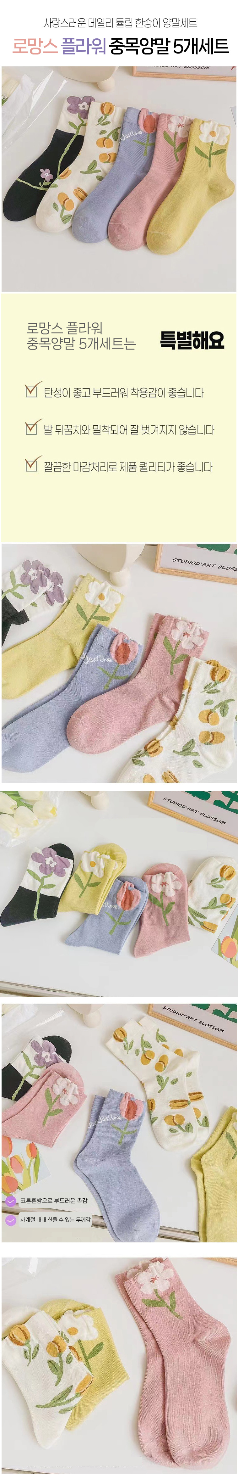 로망스 플라워 중목양말 5개세트