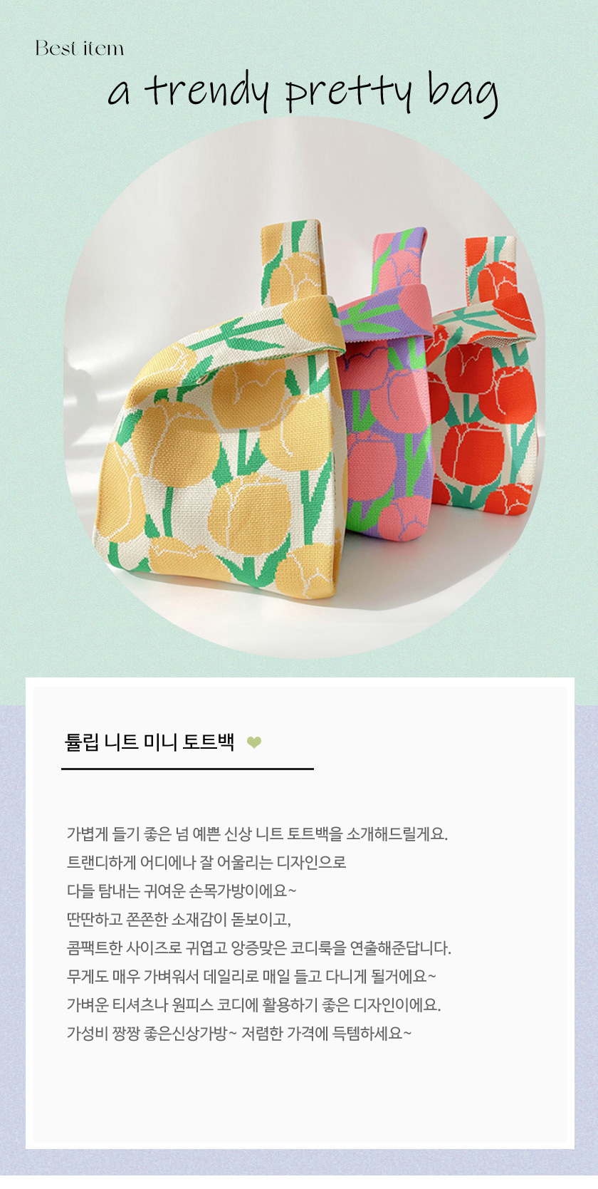 튤립 니트 미니 토트백