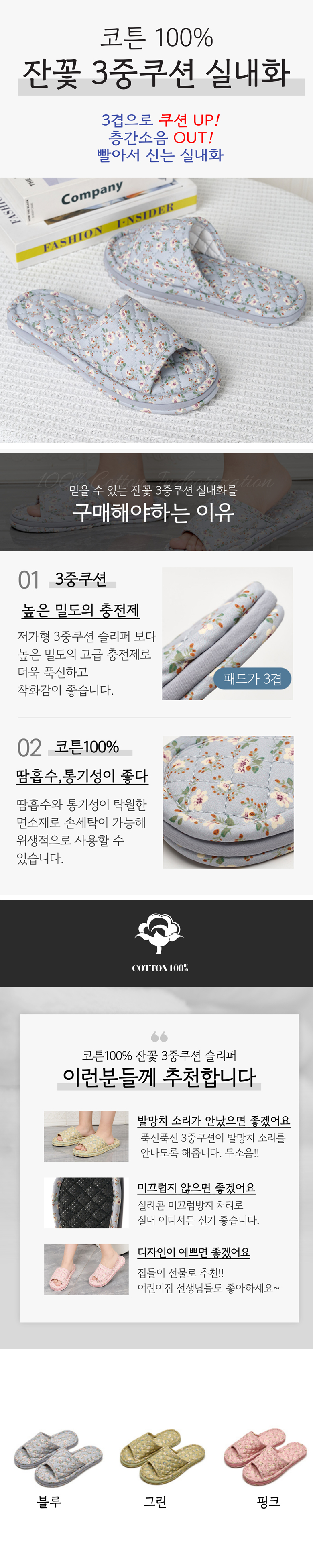 순면 3중 쿠션 슬리퍼