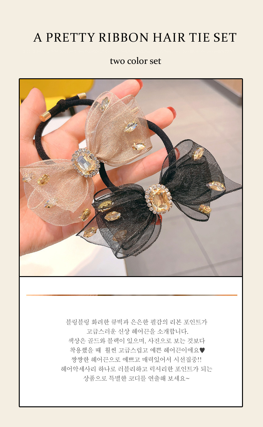 반하다 고급리본큐빅 헤어끈