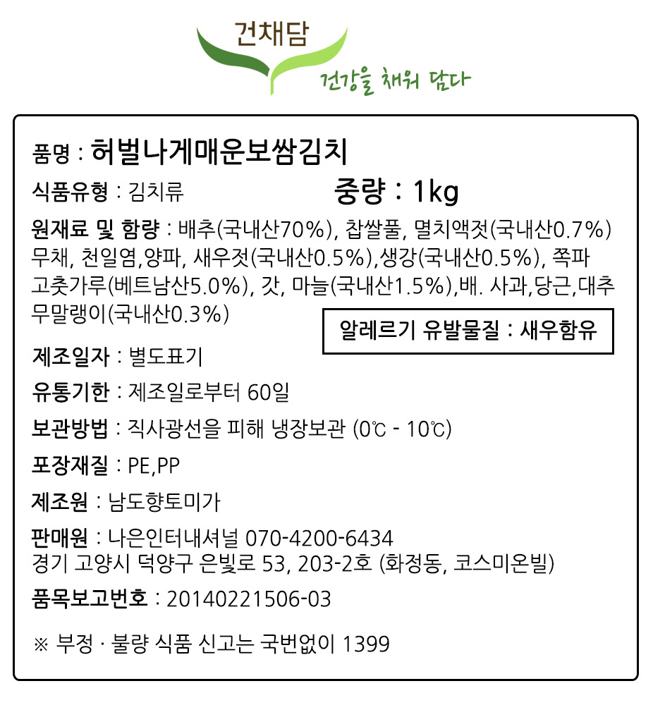 건채담 맛갈지게 허벌나게 매운 보쌈김치 1kg