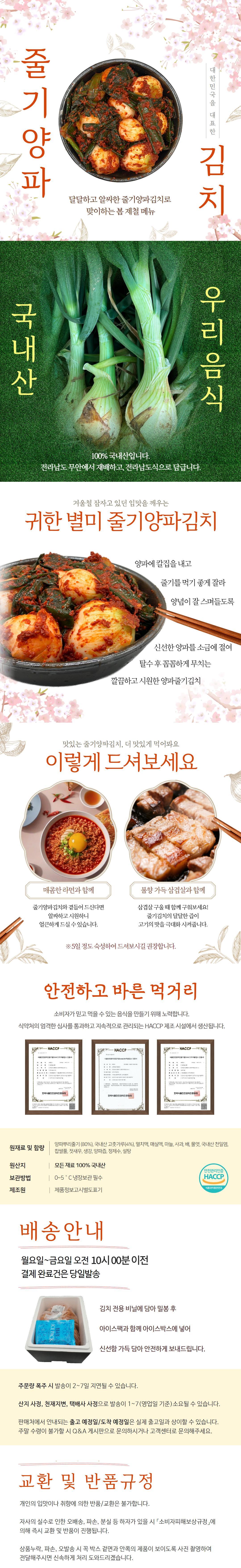 100프로 국내산 전라도 양파줄기김치 3kg