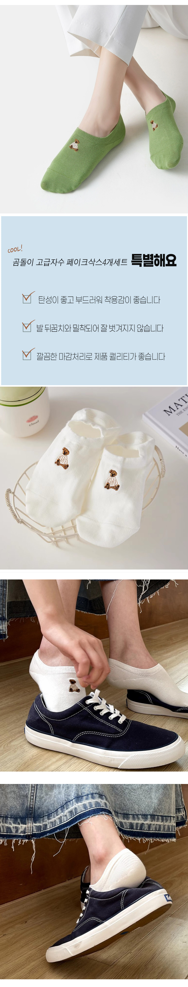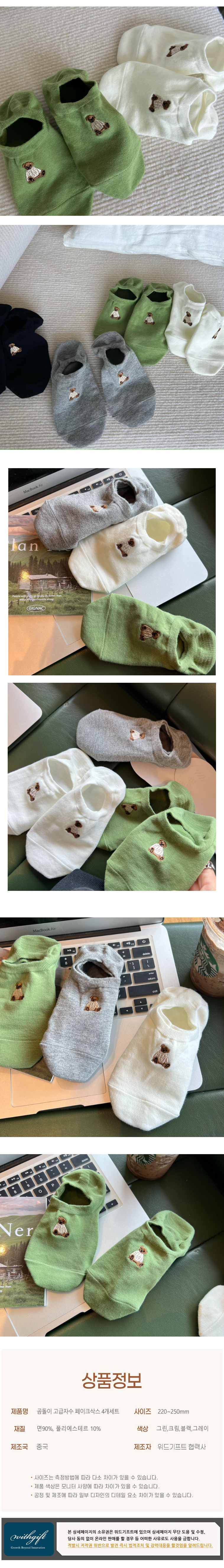 곰돌이 고급자수 페이크삭스 4개세트