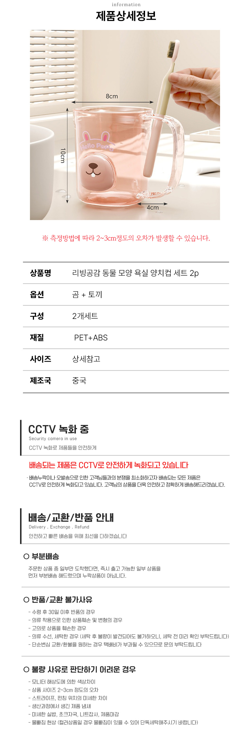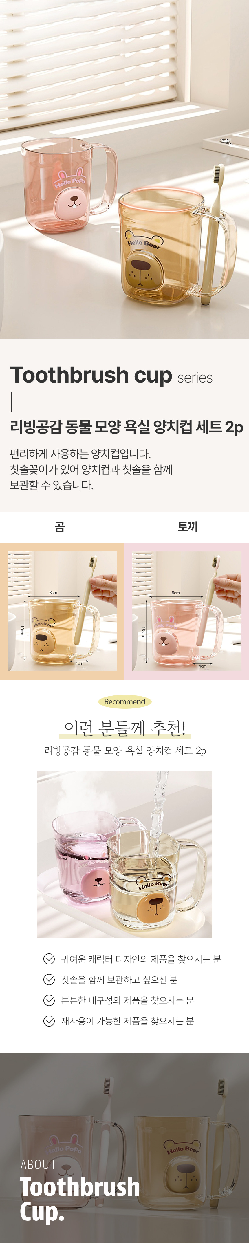 리빙공감 동물 모양 욕실 양치컵 세트 2p