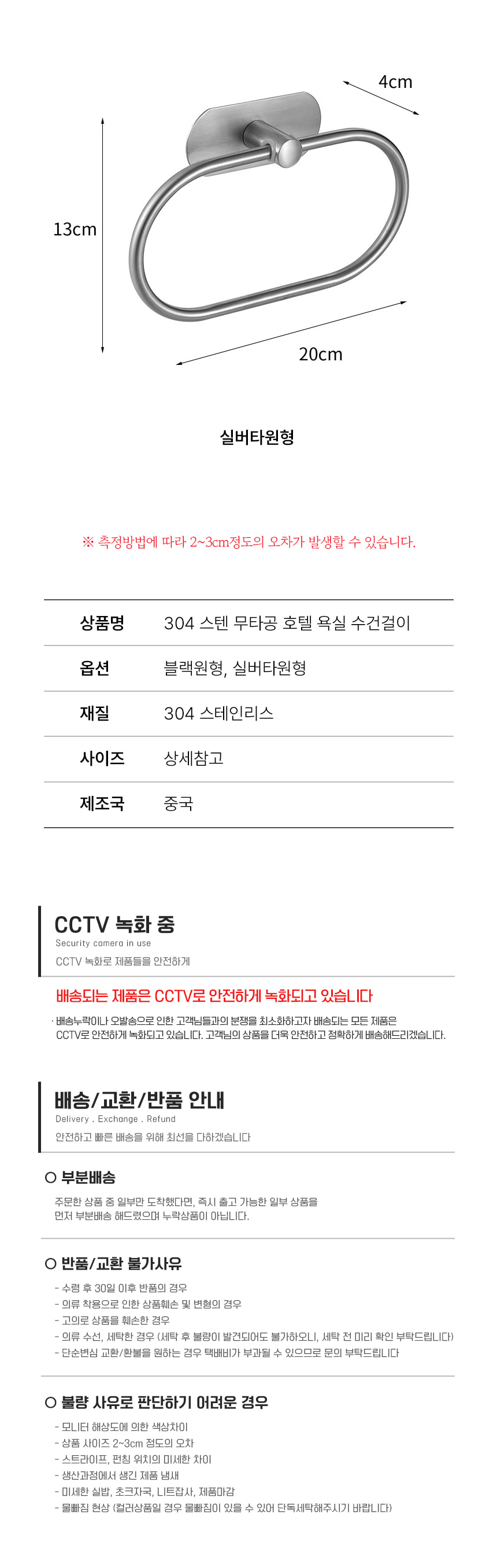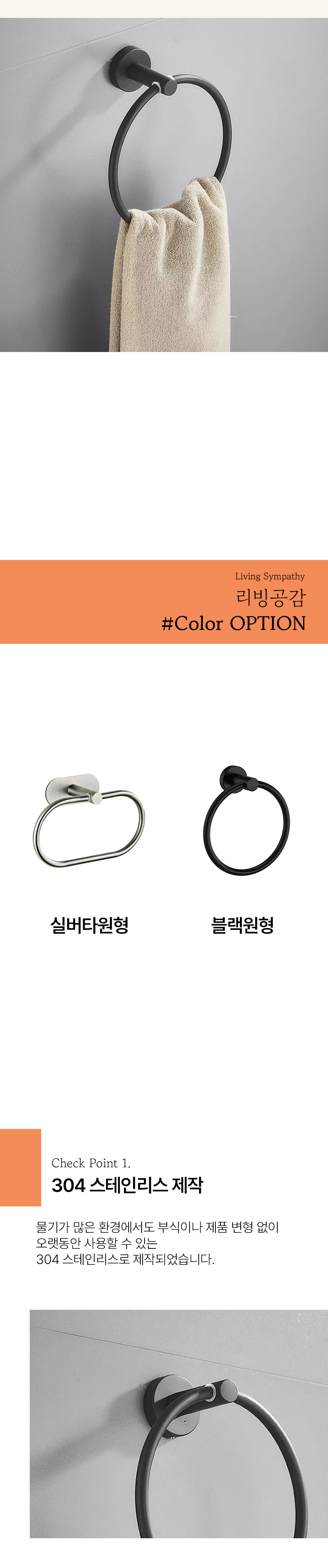 리빙공감 304 스텐 무타공 호텔 욕실 수건걸이