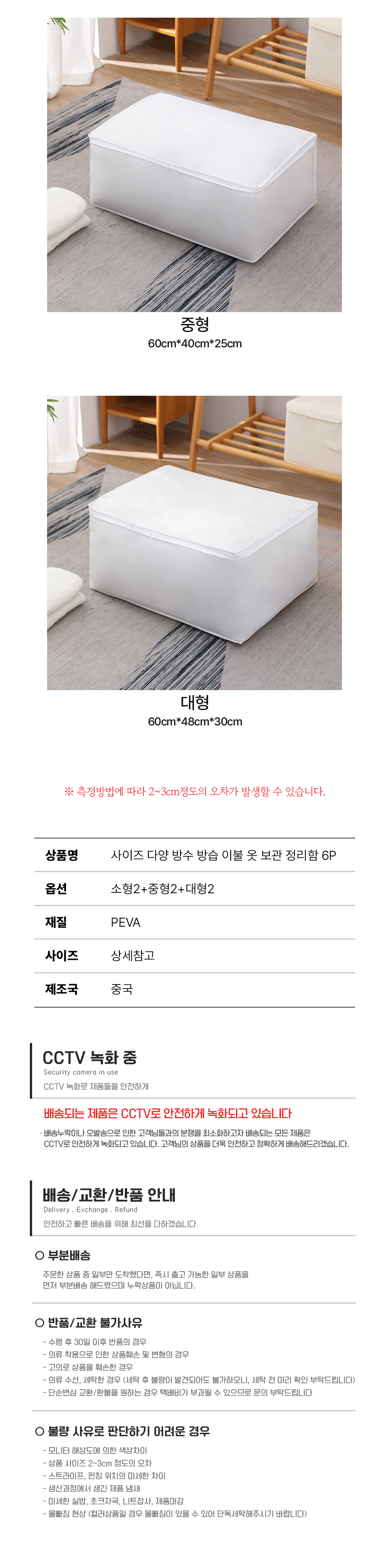 리빙공감 사이즈 다양 방수 방습 이불 옷 보관 정리함 6P