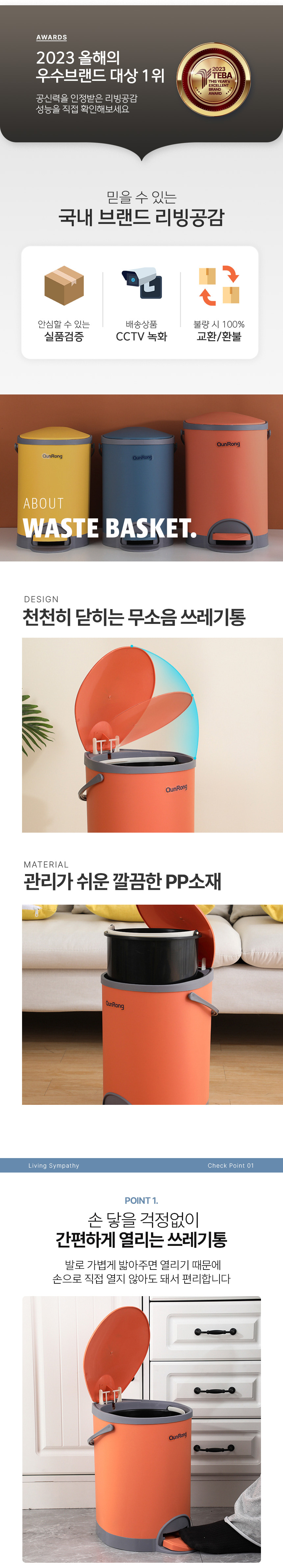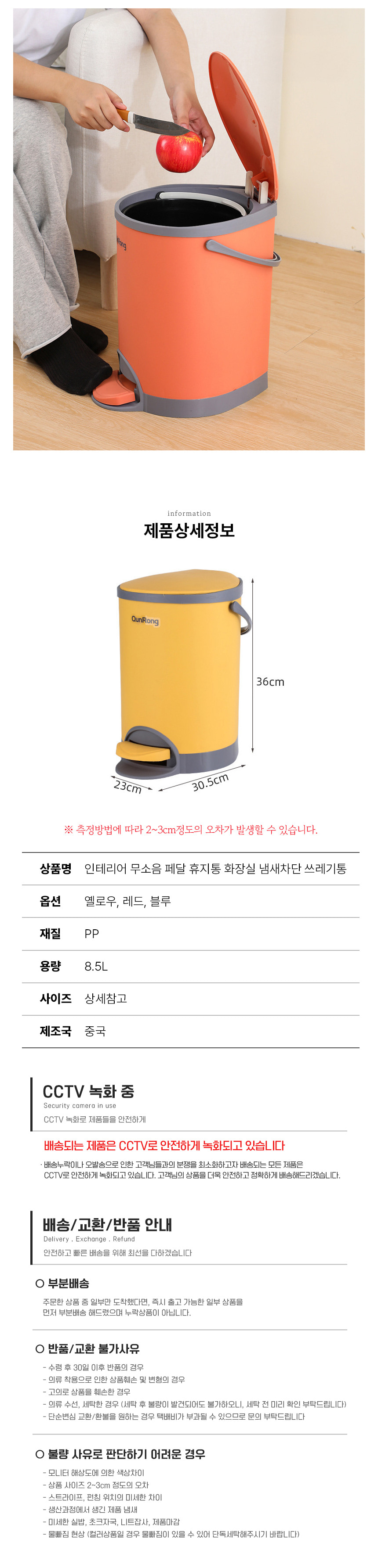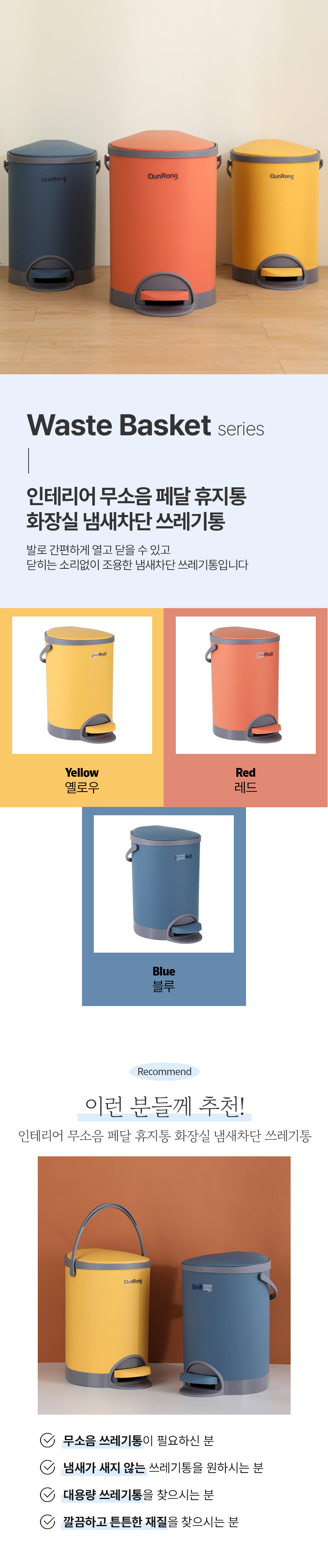 인테리어 무소음 페달 휴지통 화장실 냄새차단 쓰레기통