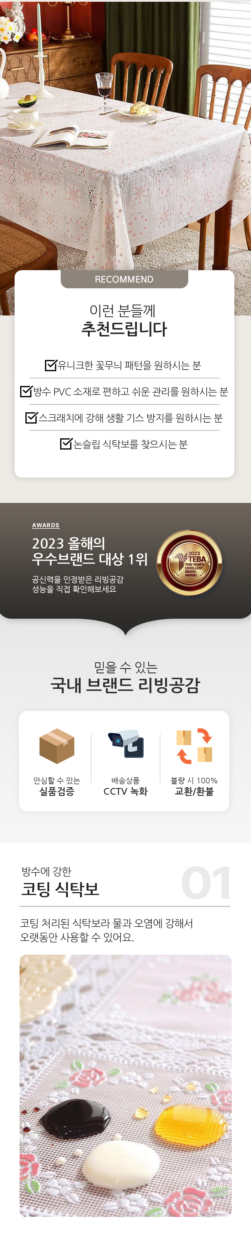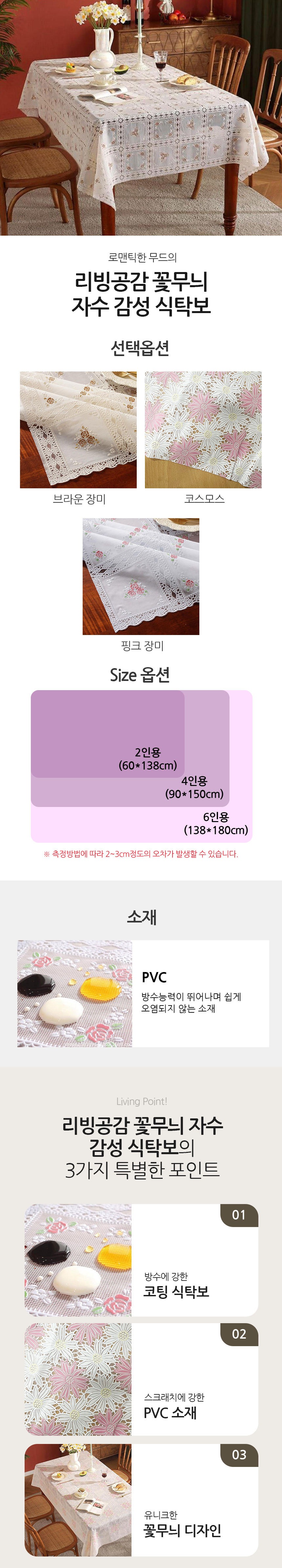 리빙공감 꽃무늬 자수 감성 식탁보