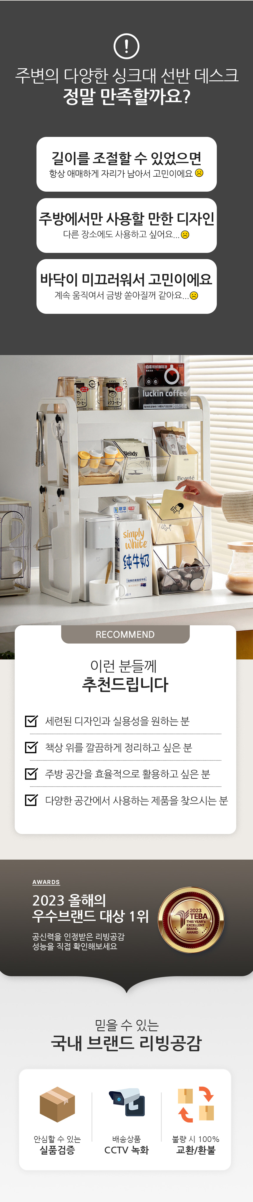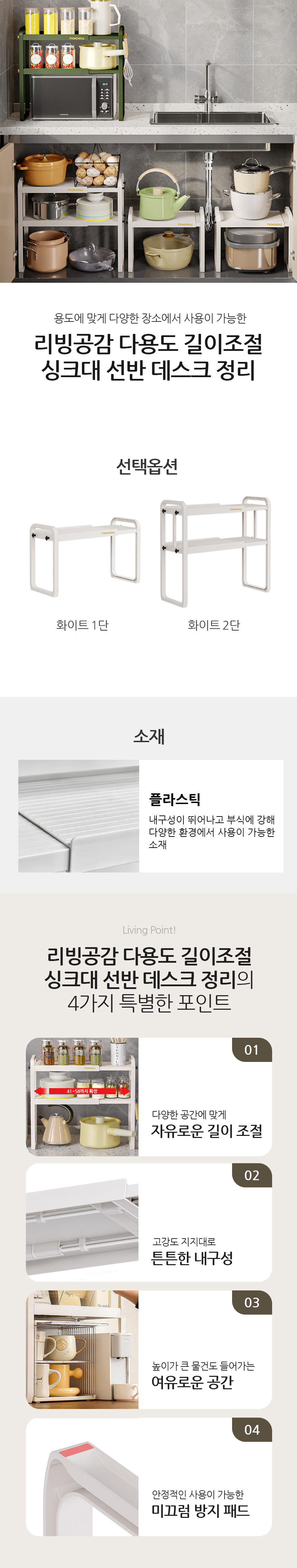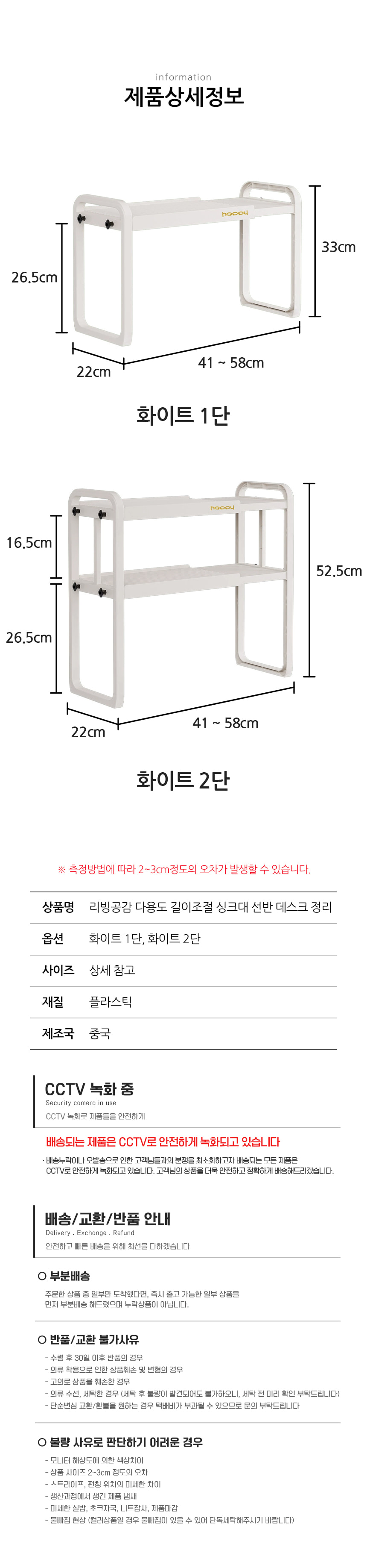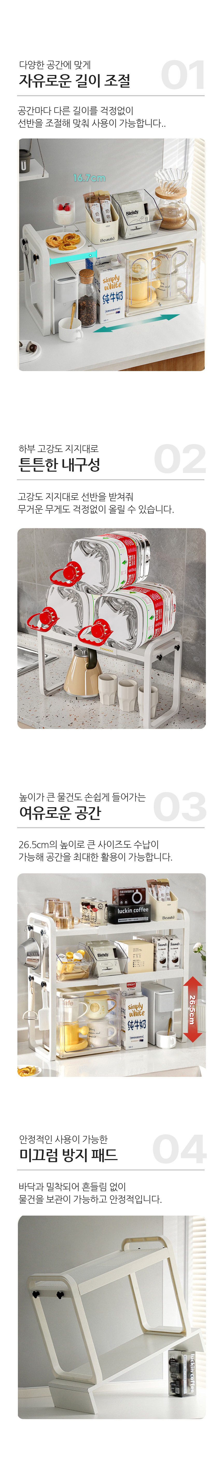 깔끔 다용도 길이조절 싱크대 선반 데스크 정리 2단