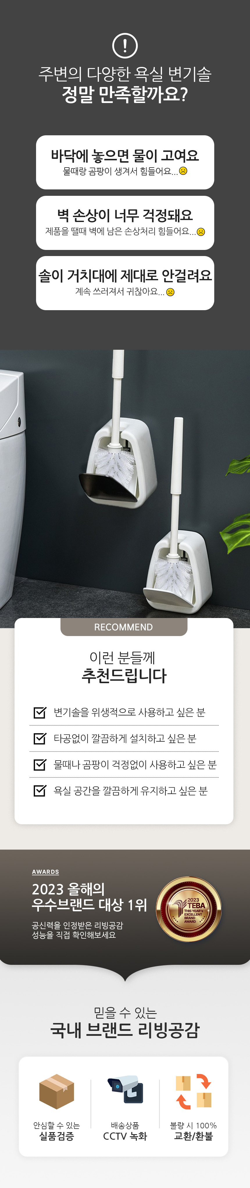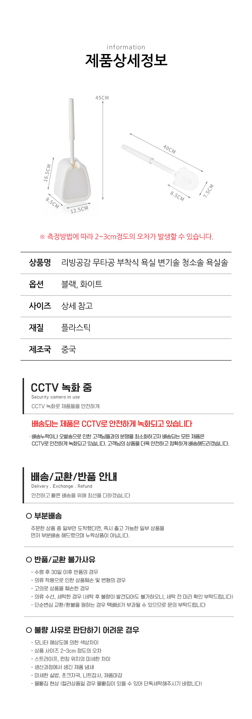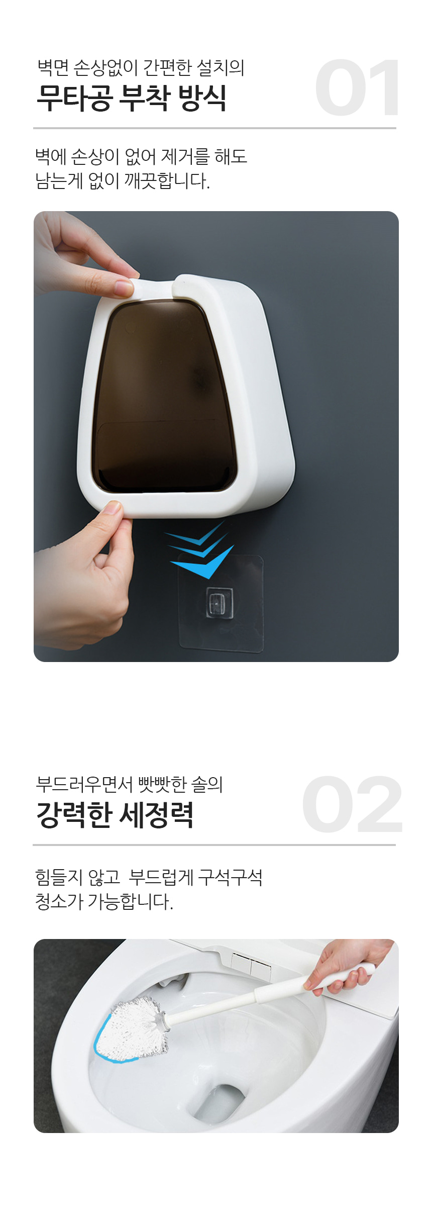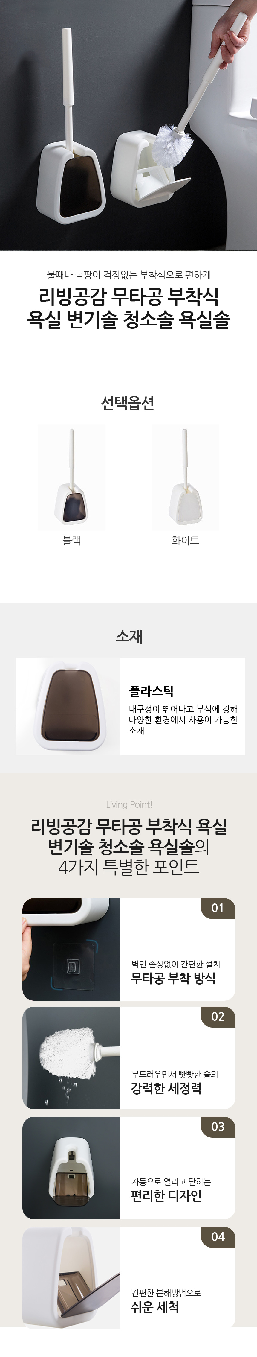 깔끔 무타공 부착식 욕실 변기솔 청소솔 욕실솔